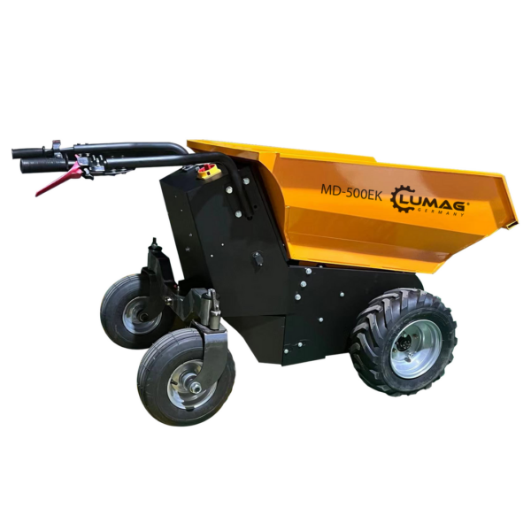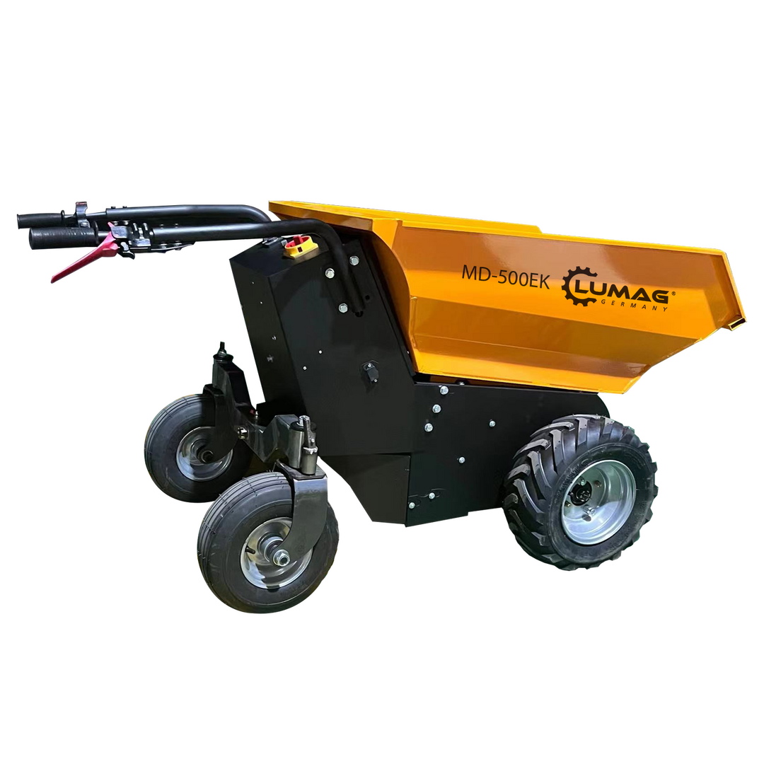 Entdecken Sie die Zukunft am Bau mit dem vielseitigen und umweltfreundlichen Lumag MD-500EK Elektrodumper! Mit seiner elektrischen Kippfunktion erleichtert er Ihnen die Arbeit und transportiert problemlos Lasten bis zu 500 kg – und das auch noch absolut geräuscharm und emissionslos durch den reinen Elektroantrieb! Seine extrem schmale Bauweise und die kompakten Abmessungen ermöglichen es Ihnen, ihn auch durch schmale Tore und Wege sicher zum Einsatzort zu bringen. Mit dem im Lieferumfang enthaltenen 48V Ladegerät und dem Akku-Satz (4 x 12 V, 32 Ah) sind Sie sofort einsatzbereit. Und das Beste: der MD-500EK kann auch in geschlossenen Räumen verwendet werden! Und das ist nicht alles: der MD-500EK ist jetzt mit einer elektromagnetischen Bremse ausgestattet, die Ihre Sicherheit beim Einsatz erhöht und das Abbremsen des Dumpers erleichtert. Vertrauen Sie auf den Lumag MD-500EK Elektrodumper und erleichtern Sie sich Ihre Transportarbeiten!