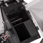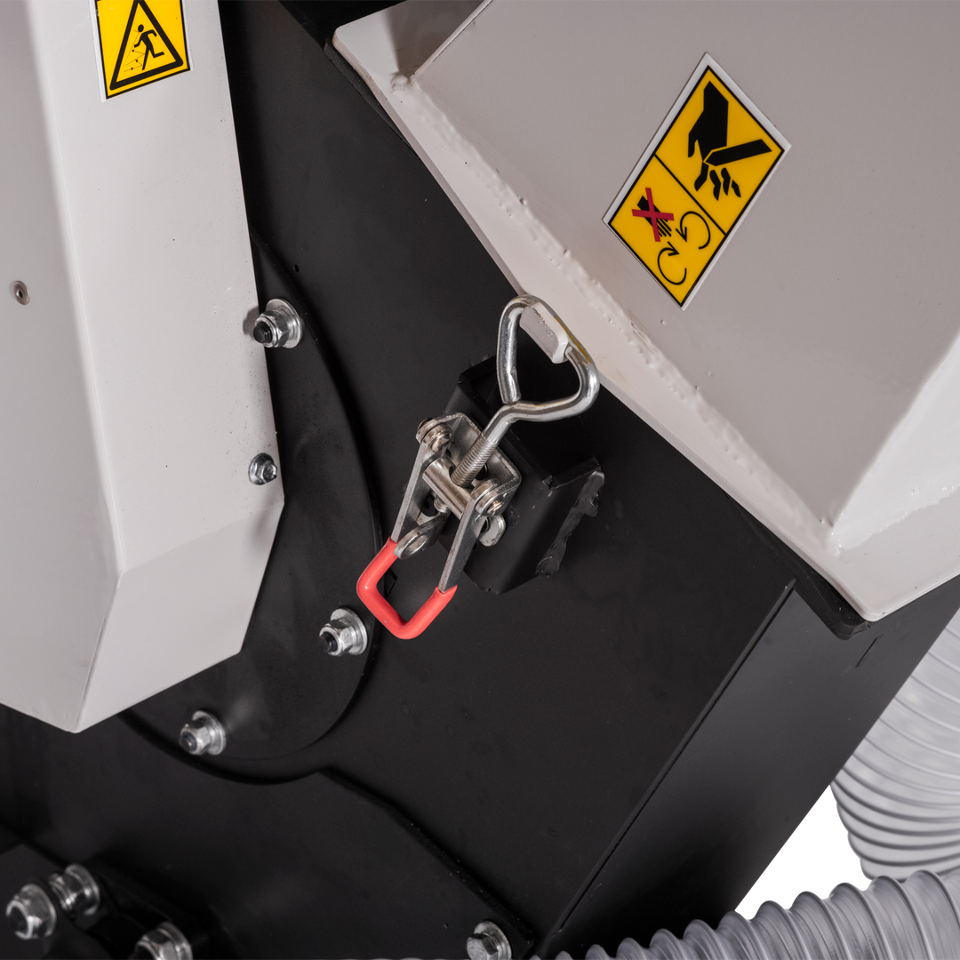 - Einfülltrichter & Auswurftrichter kann zum Reinigen der Messertrommel zur Seite geklappt werden