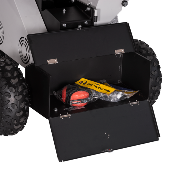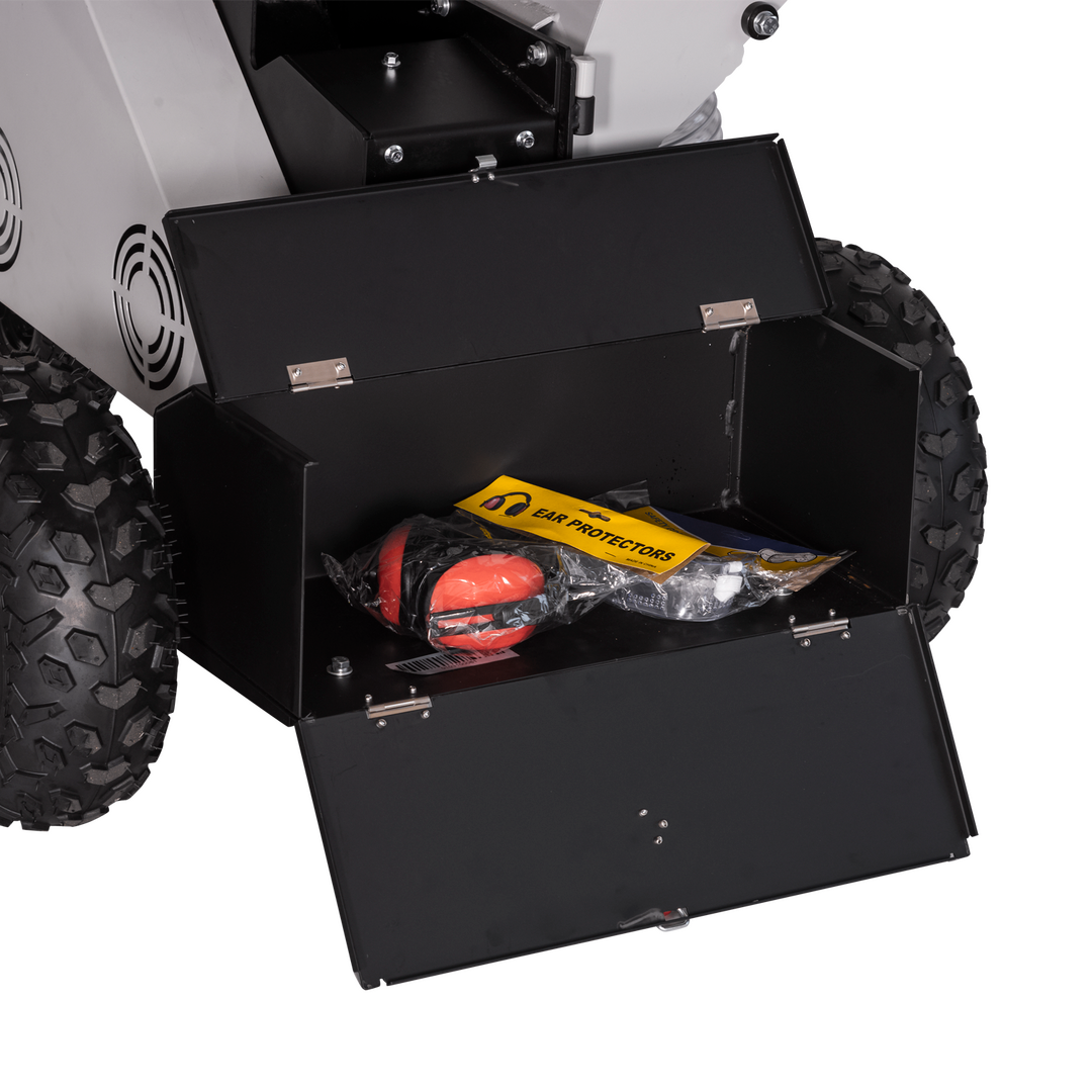 - Integriertes Fahrwerk mit Stollen-Luftbereifung für schnelles, einfaches Umsetzen auch in unwegsamem Gelände
