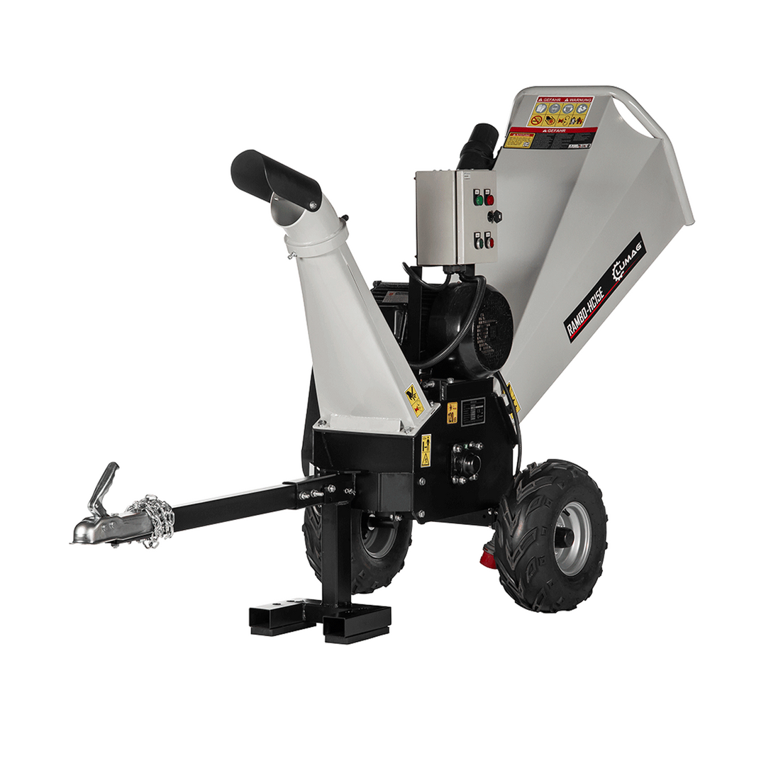 Mit dem Lumag Elektro-Trommelhäcksler RAMBO-HC15E wird das Zerkleinern von Astwerk bis zu einem Durchmesser von Ø 100 mm zum Kinderspiel. Dank des großen Einfülltrichters und des integrierten Fahrwerks gestaltet sich die Bedienung besonders komfortabel und einfach. Die professionelle Duplex-Messertrommel mit enormer Einzugskraft verarbeitet selbst widerspenstiges Material und sorgt für ein perfektes Häckselergebnis. Der besonders laufruhige 400V-Elektromotor sorgt zudem für eine geringe Lärmemission. Der verstellbare Auswurfschacht und die Abdeckhaube runden das Gesamtpaket des RAMBO-HC15E ab. Bitte beachten Sie, dass zur Verwendung der Maschine ein 32A-Stecker benötigt wird.