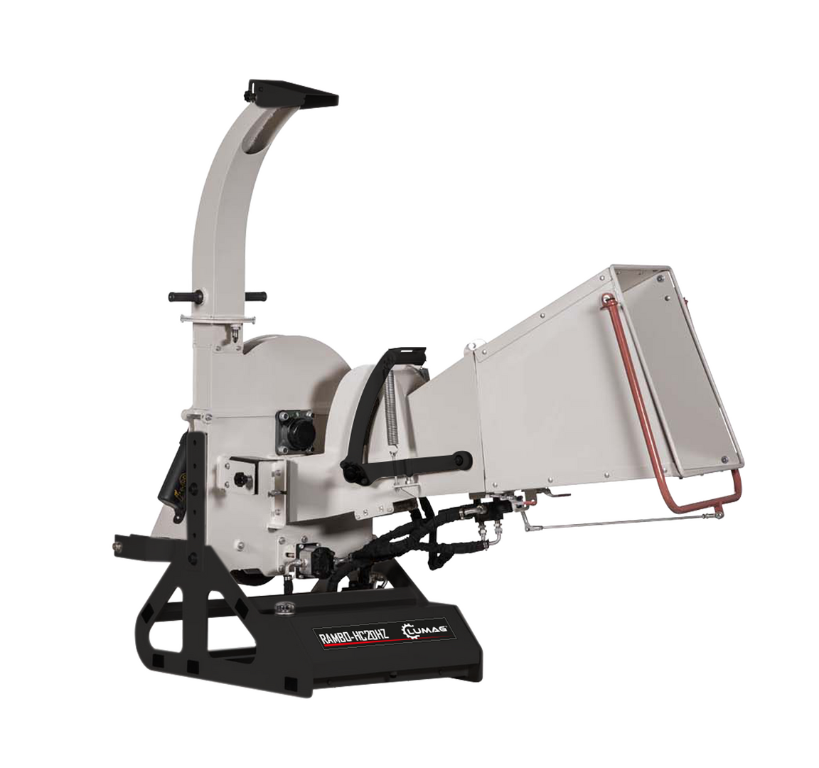 Der Lumag Zapfwellen-Scheibenradhäcksler RAMBO-HC20HZ ist ein professioneller Häcksler, der Astwerk bis zu einem Durchmesser von 200 mm mühelos zerkleinert und überall mittels Traktor und Zapfwelle flexibel einsetzbar ist. Mit der hydraulischen Einzugswalze und der individuell einstellbaren Einzugsgeschwindigkeit wird das Arbeiten erleichtert. Der Häcksler verarbeitet auch widerspenstiges Material dank der vier Messern und einem Gegenmesser. Das Schnittgut wird über den 360° drehbaren und 75 cm hohen Auswurfschacht ausgeworfen. Der Häcksler verfügt über ein aufklappbares Scheibenradgehäuse und einen klappbaren Einwurftrichter für einfacheres Transportieren und Lagern. Der Hydrauliköltank mit einer Kapazität von 26,5 Litern und Temperaturanzeige wurde platzsparend unter dem Gerät platziert. Eine Zapfwelle ist im Lieferumfang enthalten.