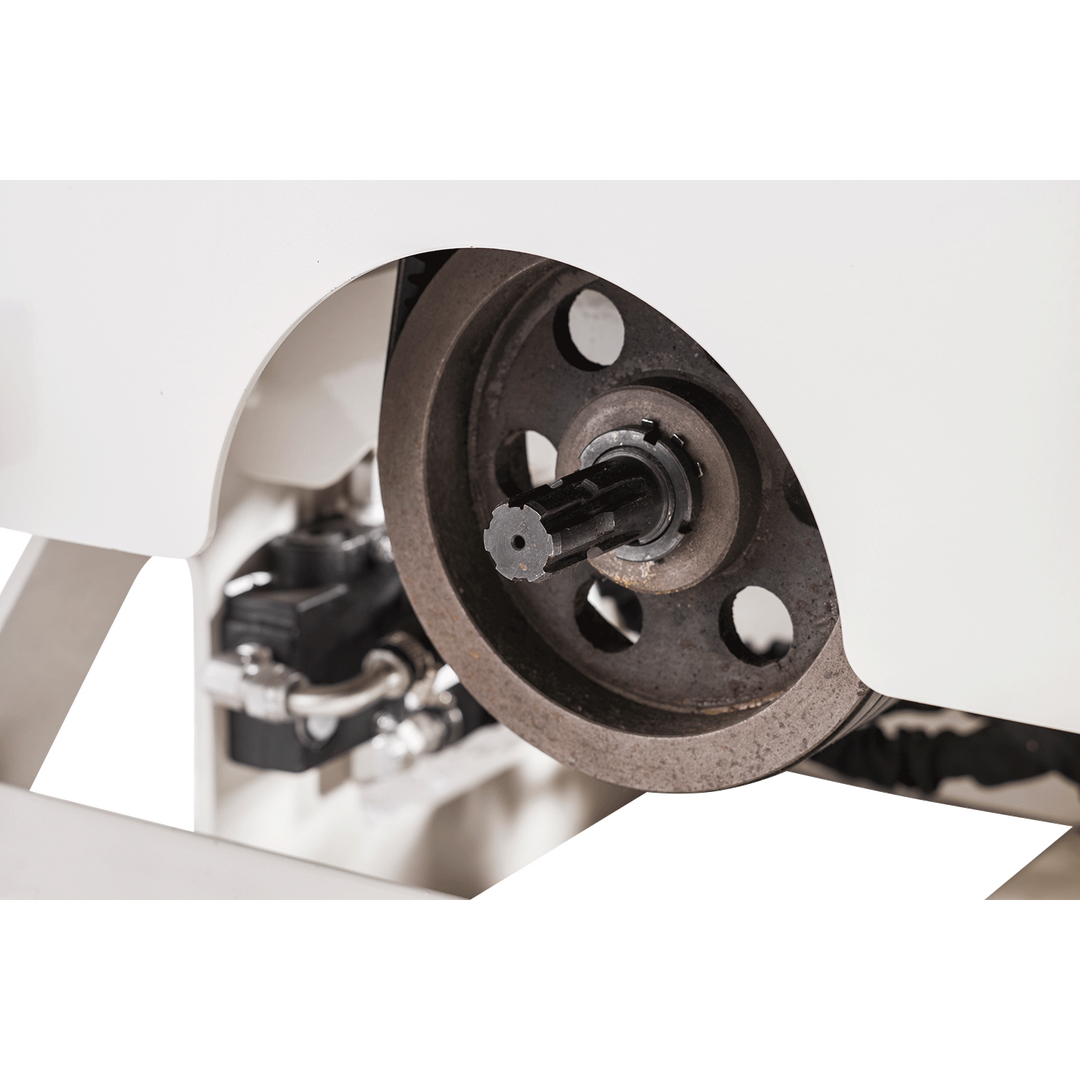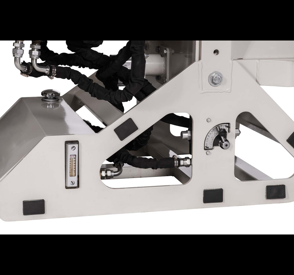 - Der 26,5 Liter großer Hydrauliköltank mit Temperaturanzeige wurde platzsparend und für eine optimale Gewichtsverteilung unter dem Gerät platziert